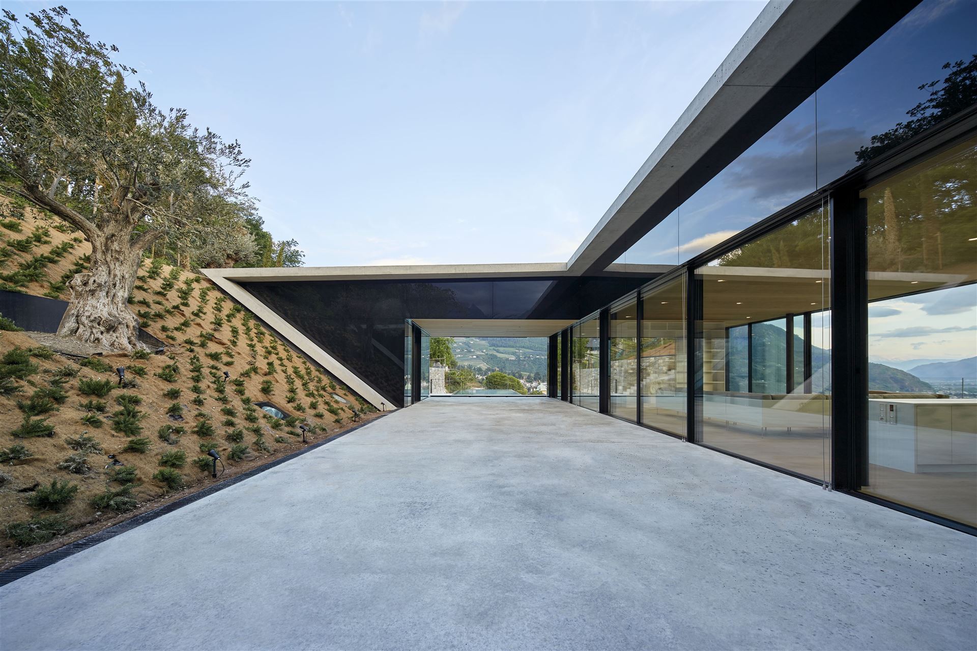 Glas als edles und zerbrechliches Material rauhem Fels gegenübergestellt, erzeugt ein faszinierendes Spannungsfeld, welches sich Architekt Werner Tscholl für die Planung dieses virtuos gestalteten Privathauses in exklusiver Lage,zu Nutze machte.