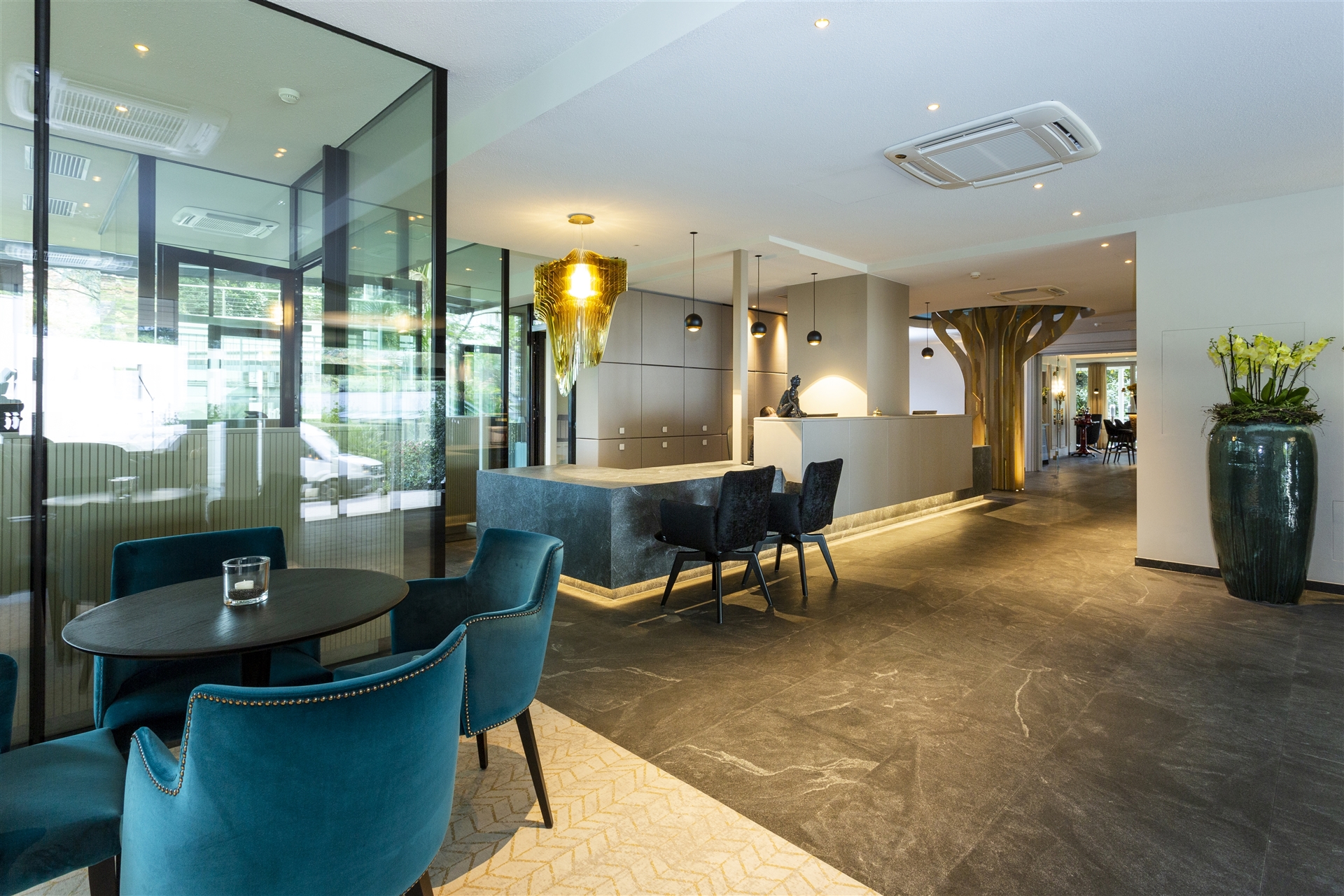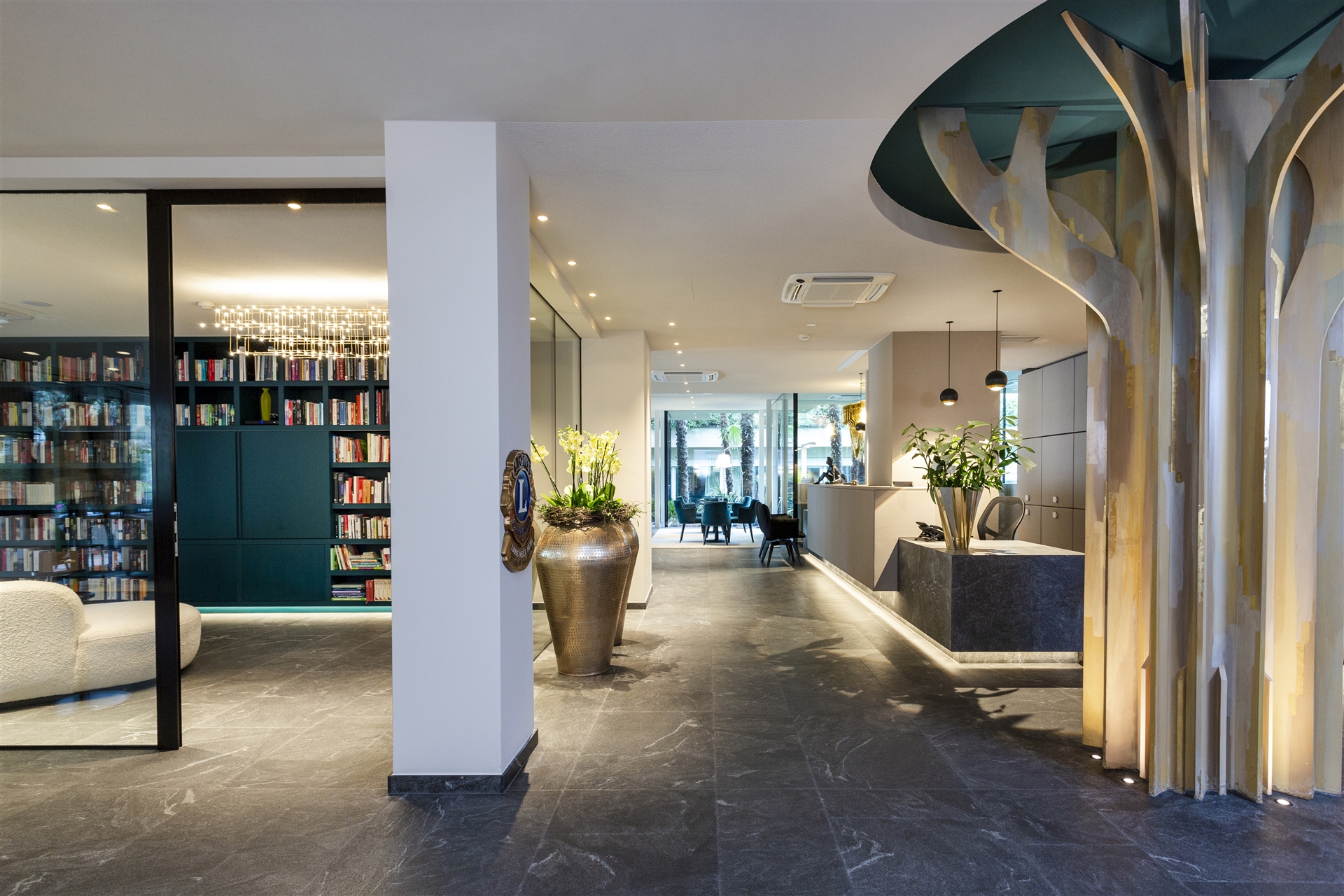 Im Zuge der Neugestaltung wurden die beiden bisherigen Gebäude des Hotel Mignon durch einen stilvollen Zwischenbau miteinander verbunden. Der neue Eingangsbereich mit großzügiger Lounge und eleganter Rezeption schafft eine angenehme Atmosphäre und heißt Gäste herzlich willkommen. Ergänzt wird das Konzept durch eine gemütliche Bibliothek, eine stilvolle Bar und ein charmantes Bistrot.