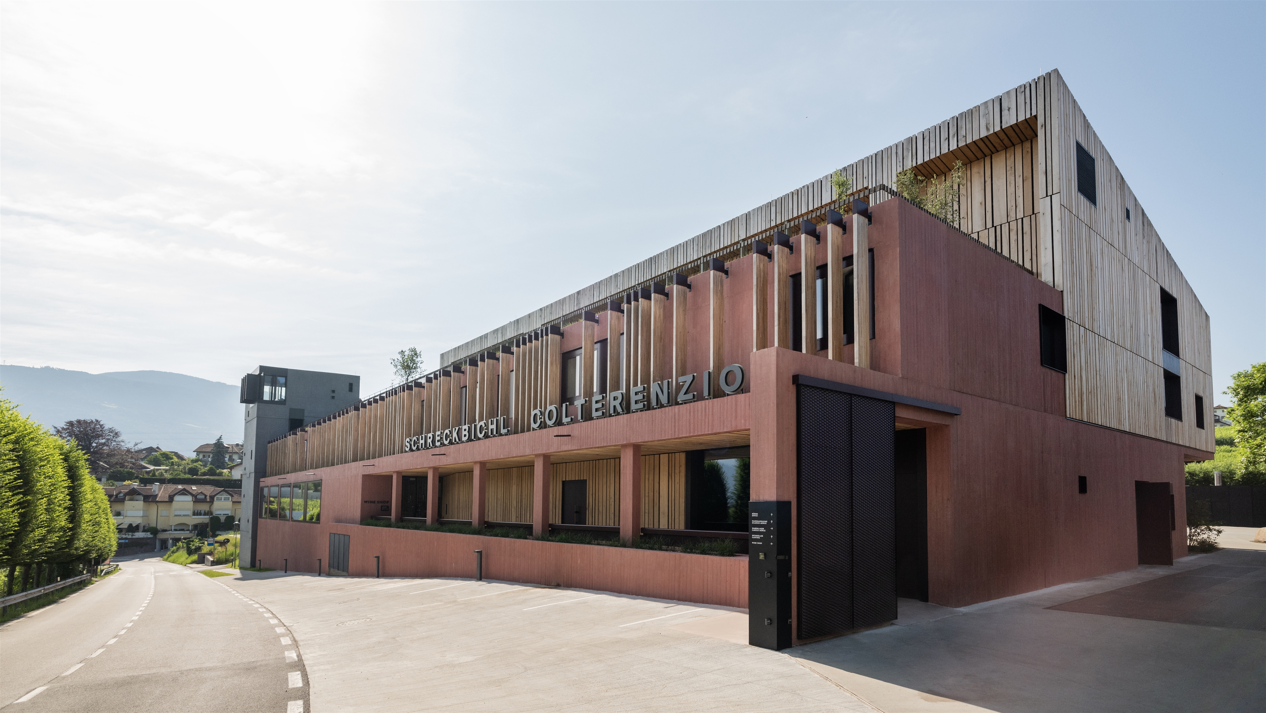 Nach umfassendem Umbau präsentiert sich die Kellerei Schreckbichl seit Dezember 2024 modern und einladend. Der markante schwarze Turm, elegante Glasflächen mit Ausblicken auf die Weinberge, natürliche Holzakzente und sorgfältig gestaltete Fassadenelemente schaffen ein stimmiges Zusammenspiel von Ästhetik, Funktion und Tradition. Der Neubau vereint modernes Design mit dem Charakter des Weinbaus und fügt sich harmonisch in die umgebende Landschaft ein.