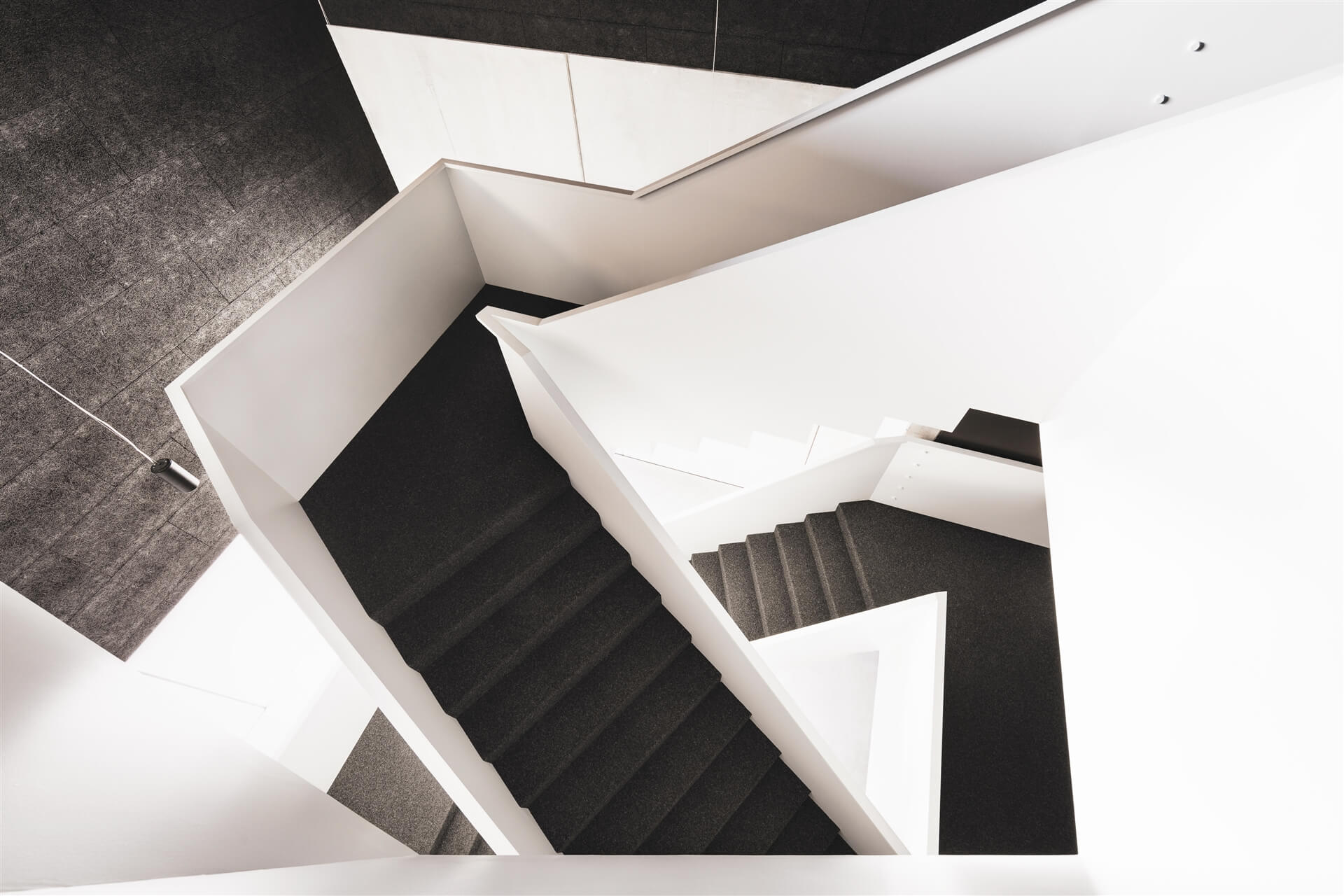 Detaillösungen verschiedenster Anschlüsse, Fertigung und Montage der 3 dimensionalen Stahltreppe.