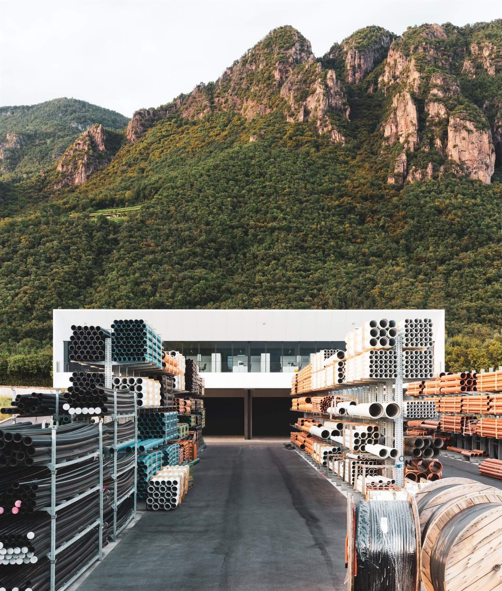Die Betriebshalle überzeugt durch ihre scheinbar schwebende Leichtigkeit und gleichzeitig massive Präsenz. Möglich wird dies durch das harmonische Zusammenspiel unterschiedlichster Baustoffe: Sichtbare und unsichtbare Elemente aus Metall, Glas und Kunststoff fügen sich zu einer innovativen Architektur, die Funktionalität mit Design vereint. So entsteht ein multifunktionales Gebäude – modern, vielseitig und ein echter Blickfang. Ein inspirierendes Beispiel für den kreativen Einsatz verschiedenster Materialien im zeitgemäßen Industriebau.