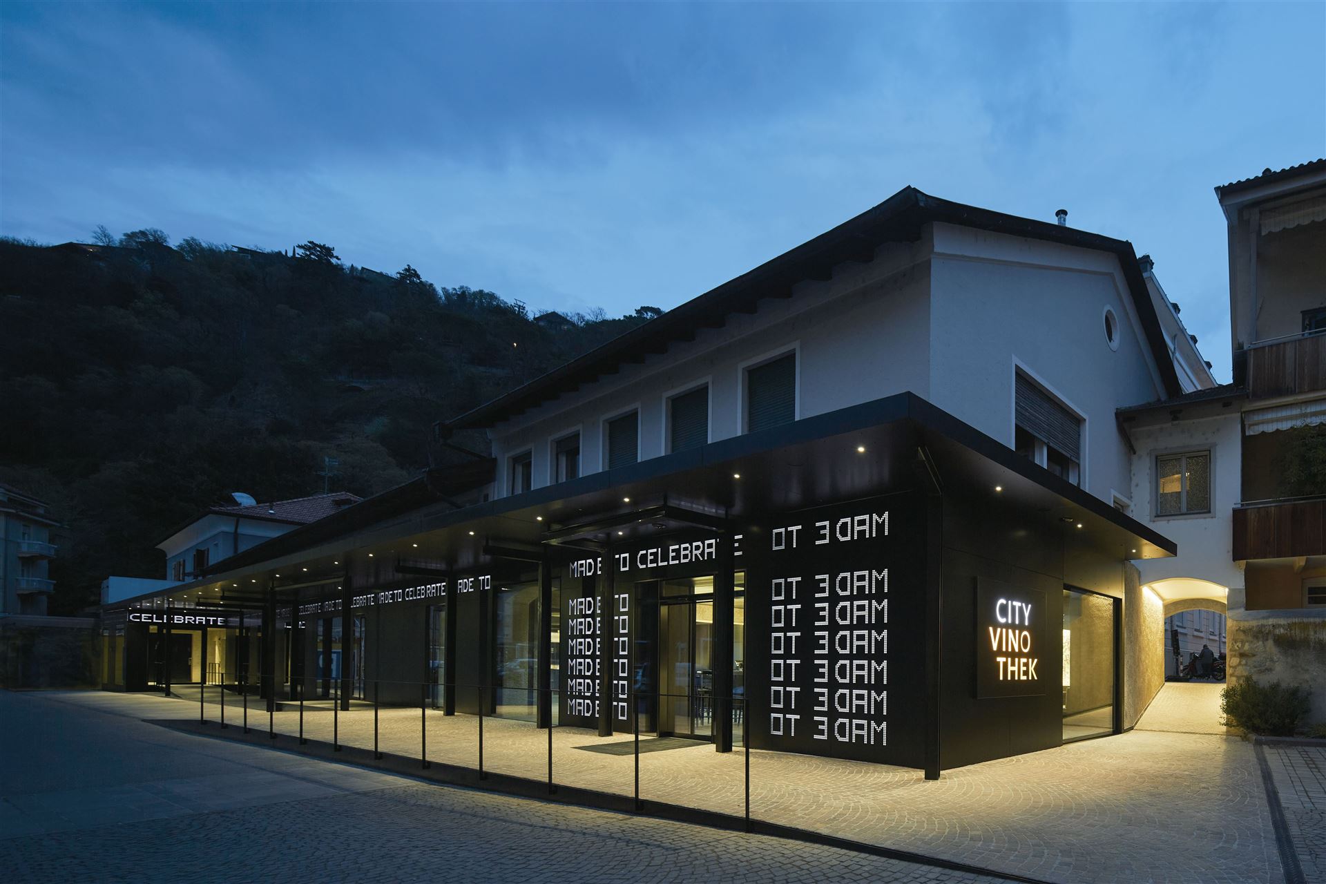 Dieses Credo lag auch dem Bau der neuen City.Vinothek Meran zu Grunde. In zwei Projektphasen waren wir vom Bau der edlen Fassade bis hin zu verschiedensten Schlosserarbeiten mit unserem vollen Repertoire beteiligt. Hervorzuheben ist neben dem stilvoll beleuchteten Stahlregal zur verplombten Fixierung der Portweinfässer auch ein hängendes Sektflaschenregal aus filigranen Rundstangen.