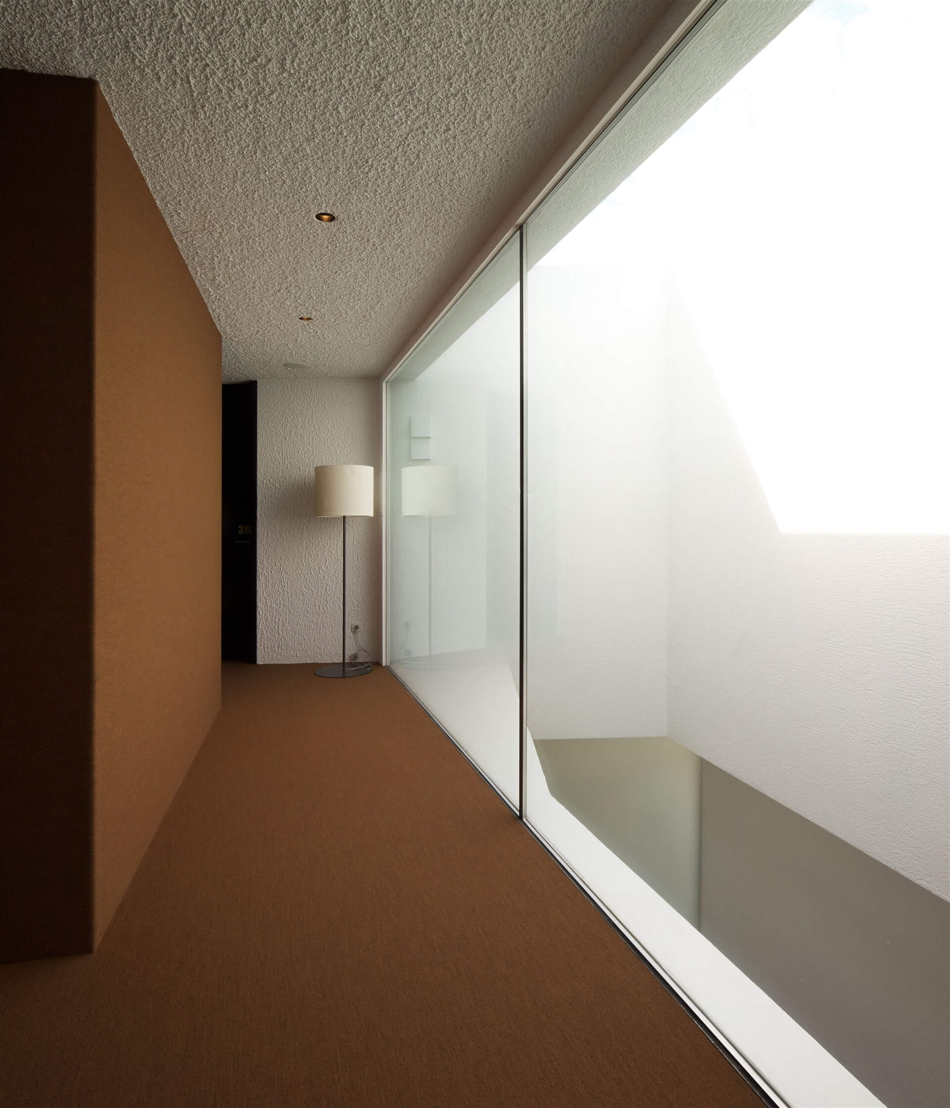 Fixverglasungen, Fixverglasungen aus satiniertem Glas im Privatbereich, Fassade Eingangsbereich, Außenabschlüsse vom Flur zum Lichthof