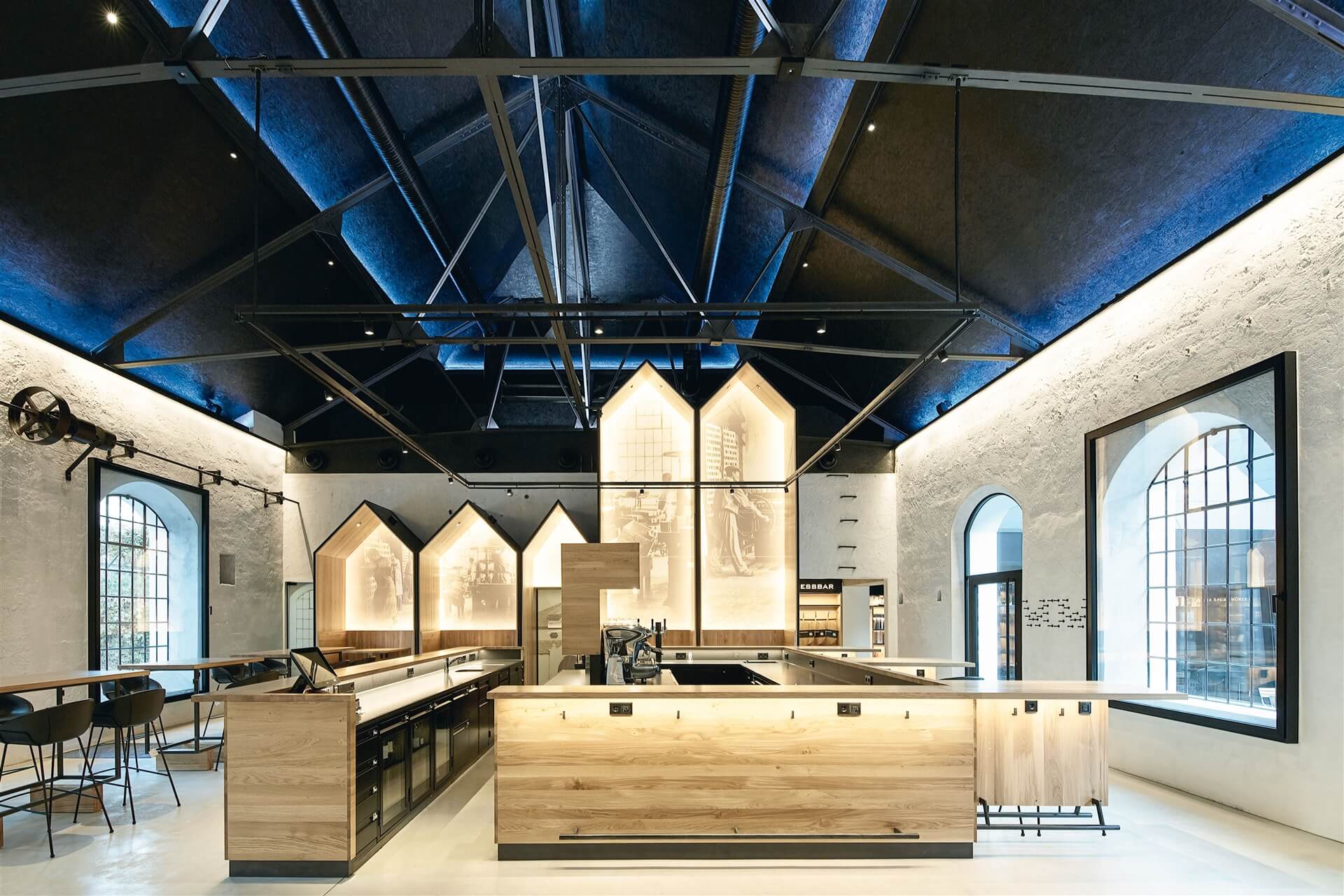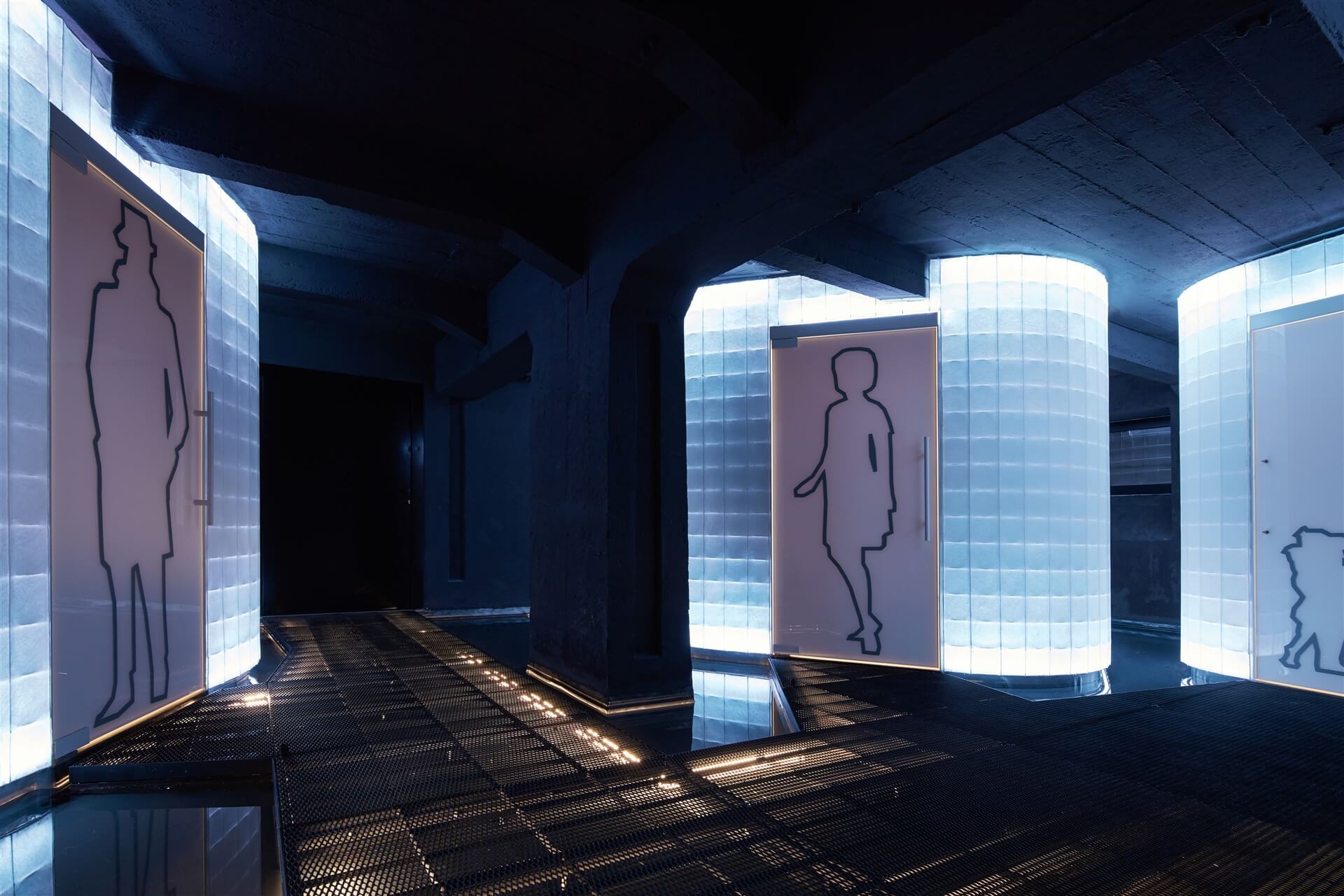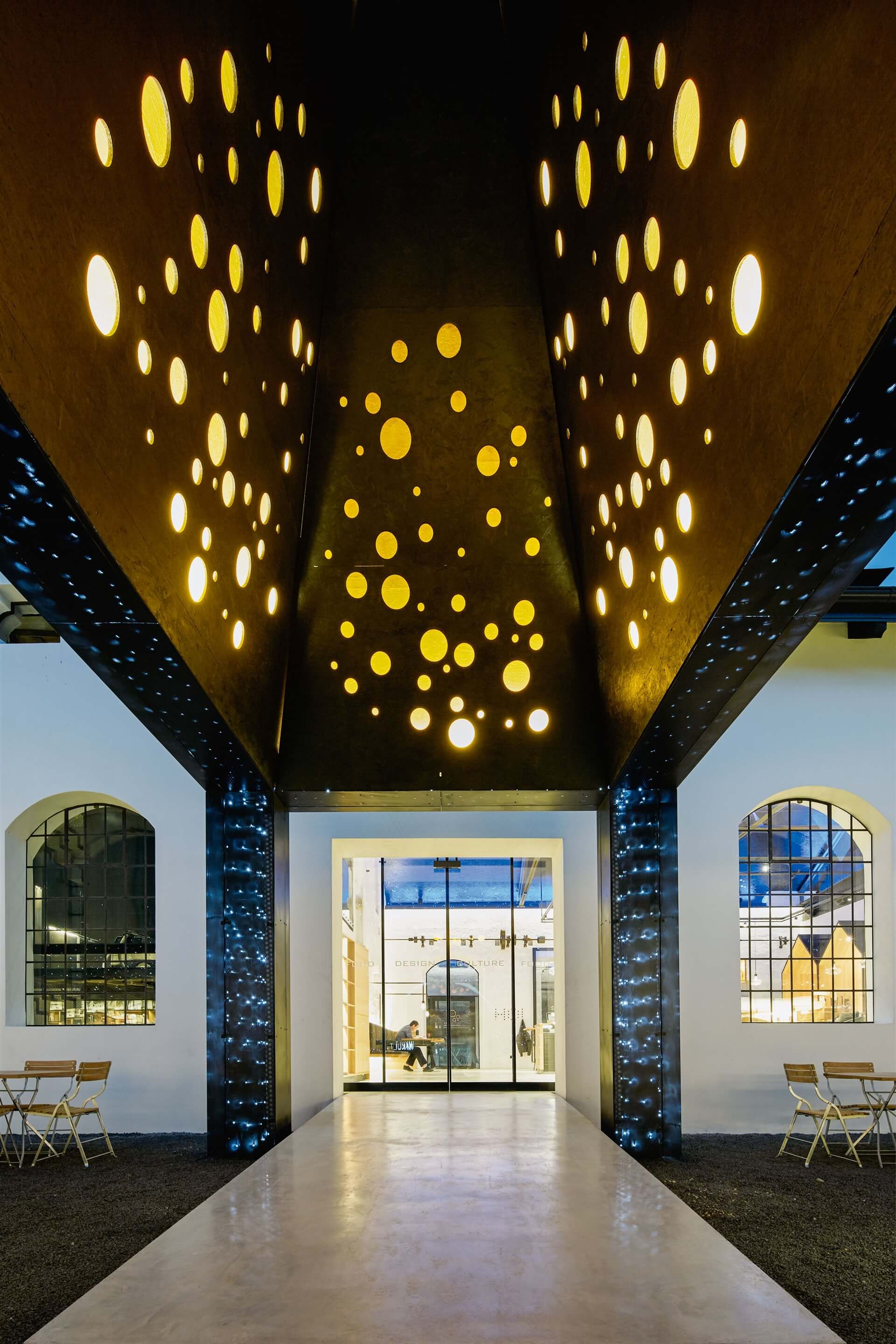 Die Architektur schafft auf prägnante, aber dezente Weise Raum für besondere Objekte und für das Erleben eines vibrierenden Lifestyles. Wir haben uns mit Begeisterung in das Gesamtkonzept eingefügt und es mit größter Sorgfalt umgesetzt. Besonders herausfordernd war die Realisierung der 3×3 Meter großen Drehfenster aus Glas. Sie ermöglichen nicht nur eine außergewöhnliche Raumwirkung, sondern erlaubten es auch, die originalen Außenfenster zu erhalten. Im Inneren sorgen zurückhaltende, geradlinige Glaskonstruktionen für eine effektive Dämmung ohne die Ästhetik zu stören. Und durch das perforierte Lochblech im Dach entstehen faszinierende Lichtpunkte, die dem Raum zusätzliche Tiefe und Atmosphäre verleihen.