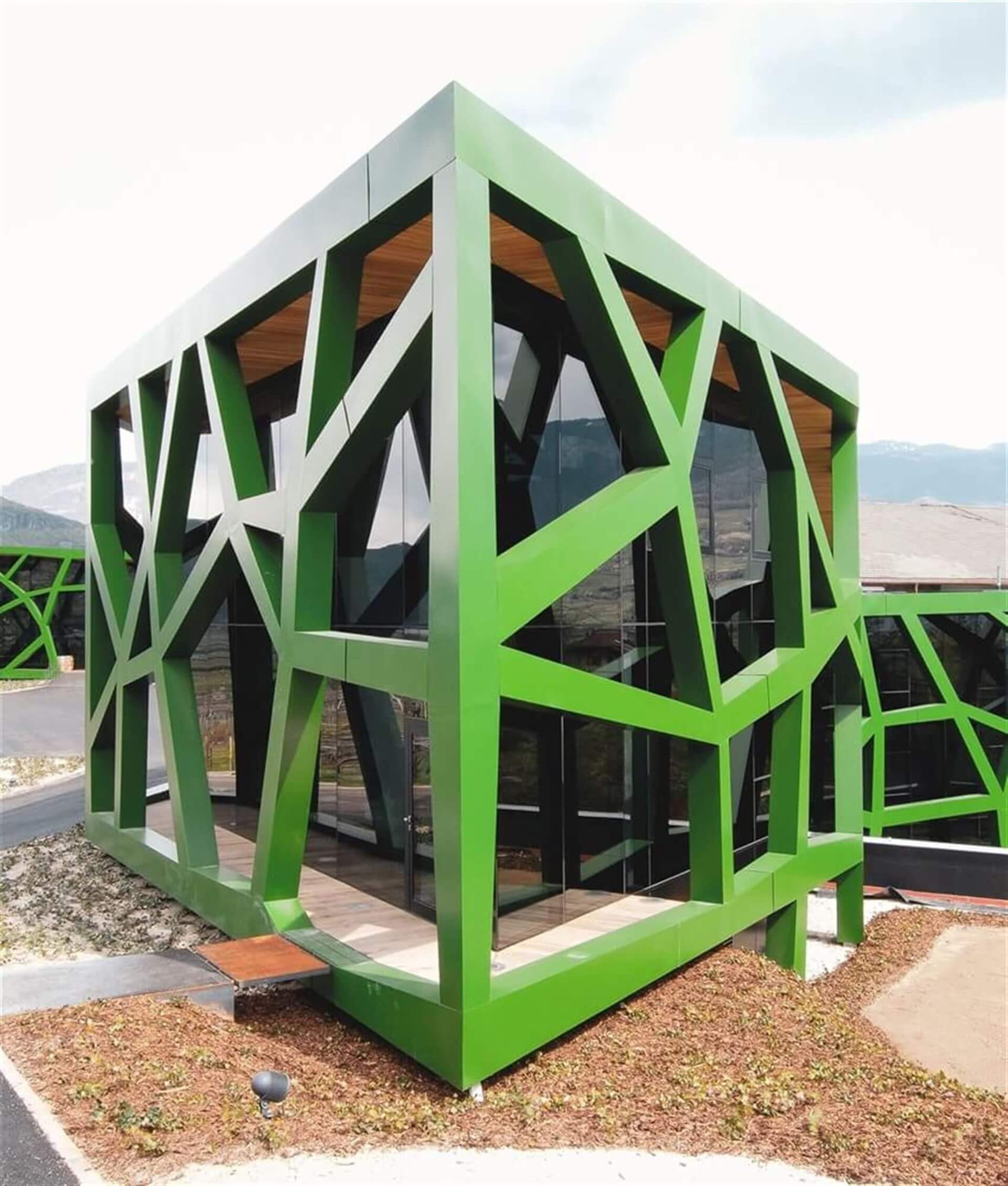 Visueller Mittelpunkt dieses spektakulären Baus sind die rebenartigen Aluminiumzylinder, die sich um die verwinkelte Glasfassade winden. Wir freuen uns, mit unseren Ideen zur Materialwahl und vor allem durch die präzise, anspruchsvolle Fertigung von 500 einzigartigen Aluminiumkörpern einen wesentlichen Beitrag zu dieser außergewöhnlichen Architektur geleistet zu haben.