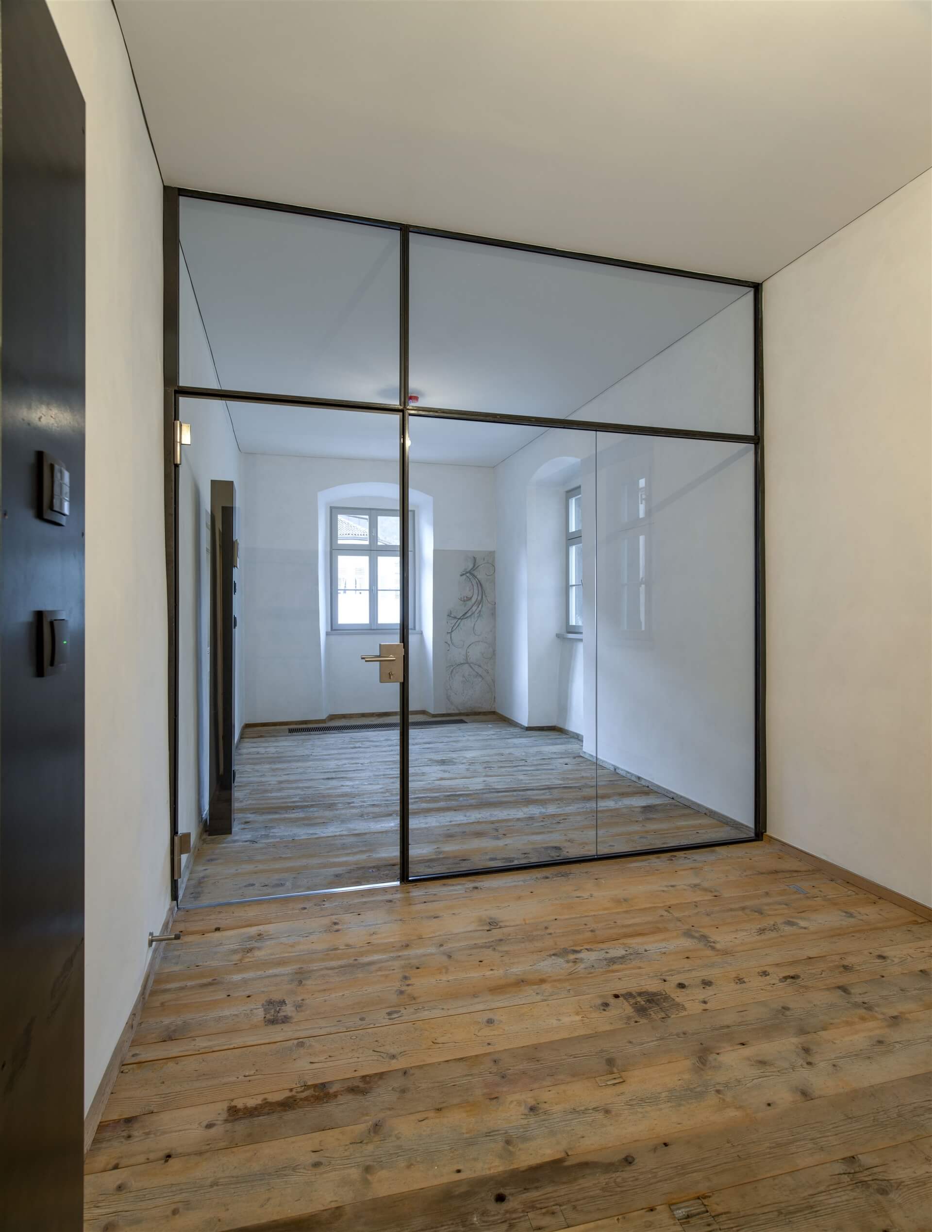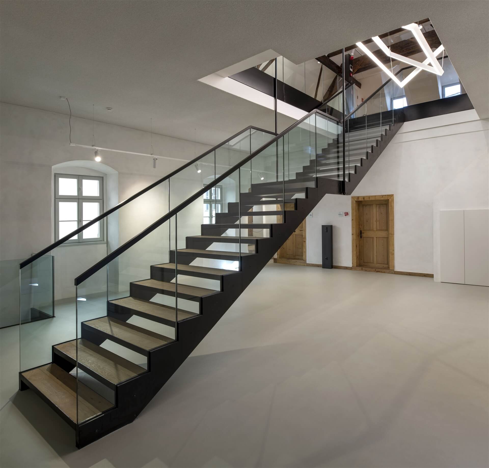 Das Gebäude hat bauliche Veränderungen aus mehreren Epochen seit dem 12. Jahrhundert durchlebt und wurde nun einer umfassenden Generalsanierung unterzogen. Unser Beitrag umfasste unzählige maßgeschneiderte Schlosserarbeiten sowie die Lieferung und Montage verschiedenster Fassadenelemente. Im Mittelpunkt stehen zwei Stahltreppen. Während die einläufige Treppe über eine eigens dafür vorgesehene Dachöffnung ins Innere eingebracht werden konnte, musste die zweite mithilfe provisorisch installierter, motorisierter Flaschenzüge Stück für Stück in die bestehende Struktur eingepasst werden – ein präzises Zusammenspiel von Planung und Handwerkskunst. Heute verstehen wir unseren Beitrag als Teil einer jahrhundertealten, gelebten Tradition des Handwerks.