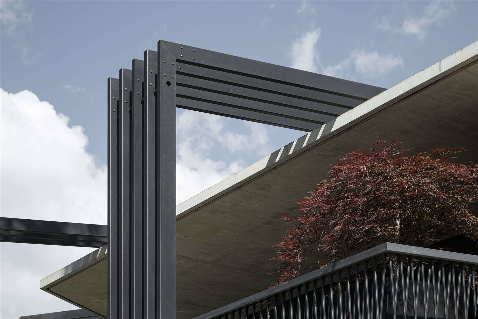 Per questo progetto dalle linee essenziali abbiamo fornito e installato principalmente lavori di carpenteria metallica: ringhiere, recinzioni, cancelli d’ingresso e grate per accessi carrabili. Particolarmente distintivi sono i supporti decorativi per le facciate, realizzati in moduli extra lunghi, rinforzati in loco e collegati agli elementi angolari per creare una cornice armoniosa. Inizialmente pensati come sostegni per piante rampicanti, questi listelli di acciaio conferiscono oggi ai due edifici un carattere unico e giocoso grazie alla loro disposizione irregolare.